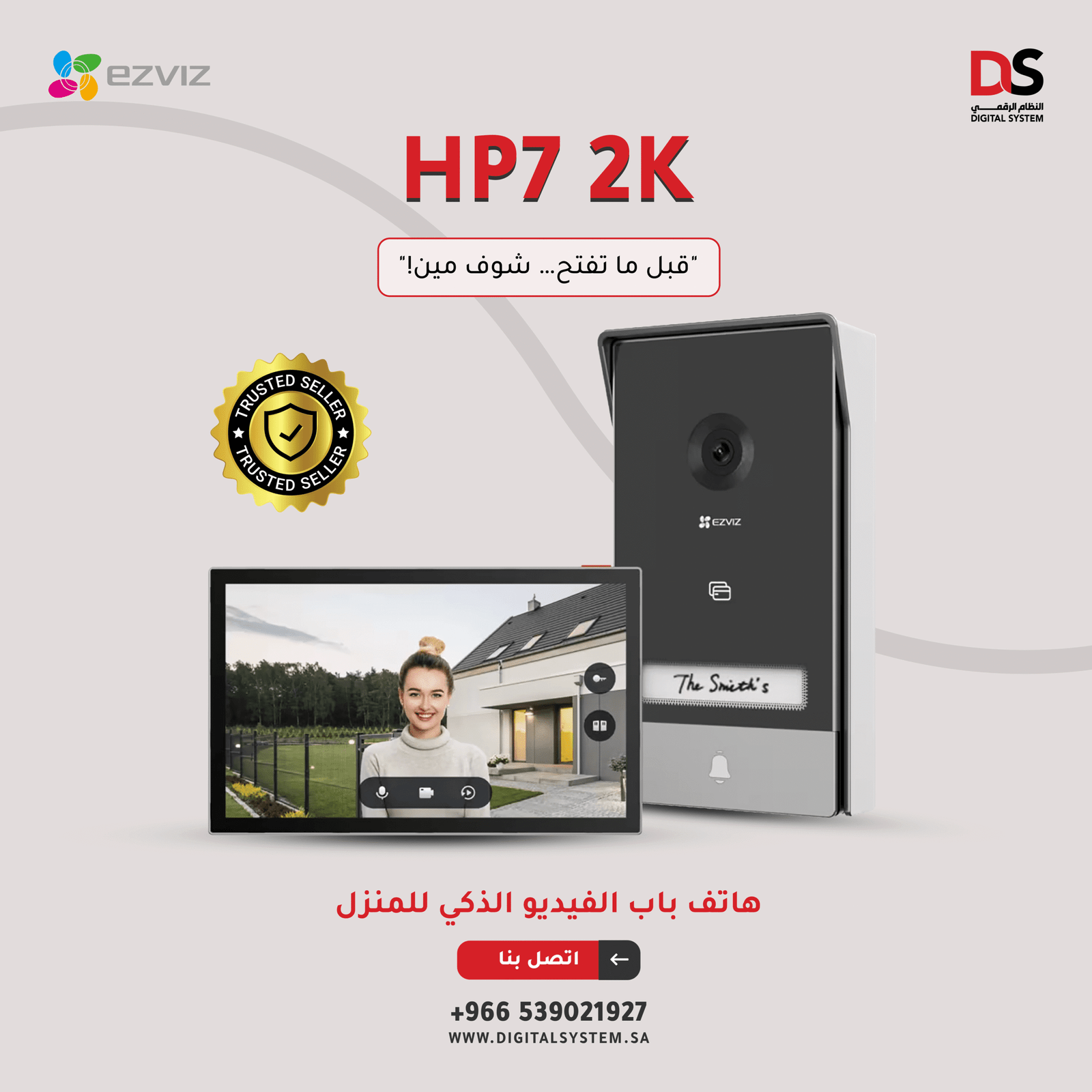حان الوقت لترقية جهاز الانتركم القديم ليصبح متصلاً بالإنترنت، ويمكن الوصول إليه عن بُعد والتحكم به عبر التطبيق. يوفر جهاز HP7 من EZVIZ، أول هاتف باب بالفيديو من نوعه، أعلى درجات الراحة لأصحاب المنازل من خلال إمكانية مشاهدة الزوار والتحدث معهم ومنحهم الدخول حتى أثناء عدم وجودهم في المنزل. كما يعزز مستوى الأمان بفضل كونه كاميرا وهاتفًا خارجيًا في جهاز واحد، حيث يسجّل الفيديو بدقة 2K ويكتشف الأشخاص مع إرسال إشعارات فورية إلى الهاتف.