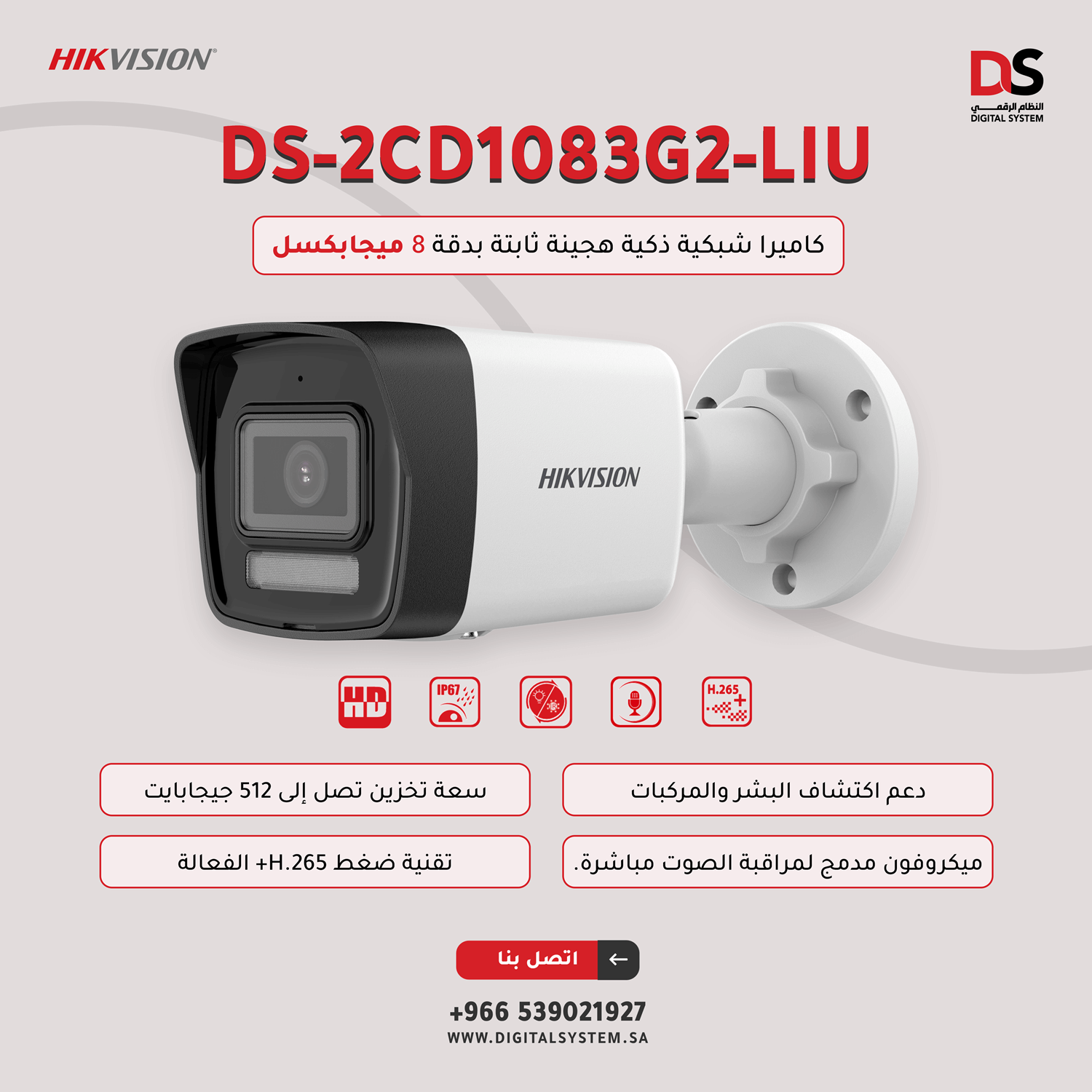 November 25, 2025هيكفيجن – DS-2CD1083G2-LIU كاميرا شبكية ذكية هجينة ثابتة، 8 ميجابكسل، مزودة بإضاءة هجينة